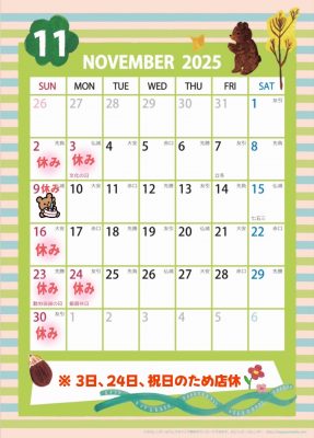 🌟11/3、24は祝日のため店休