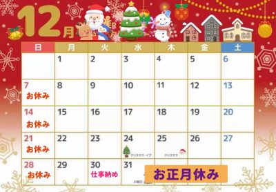 12月に入り、今年も残り僅かですね!
